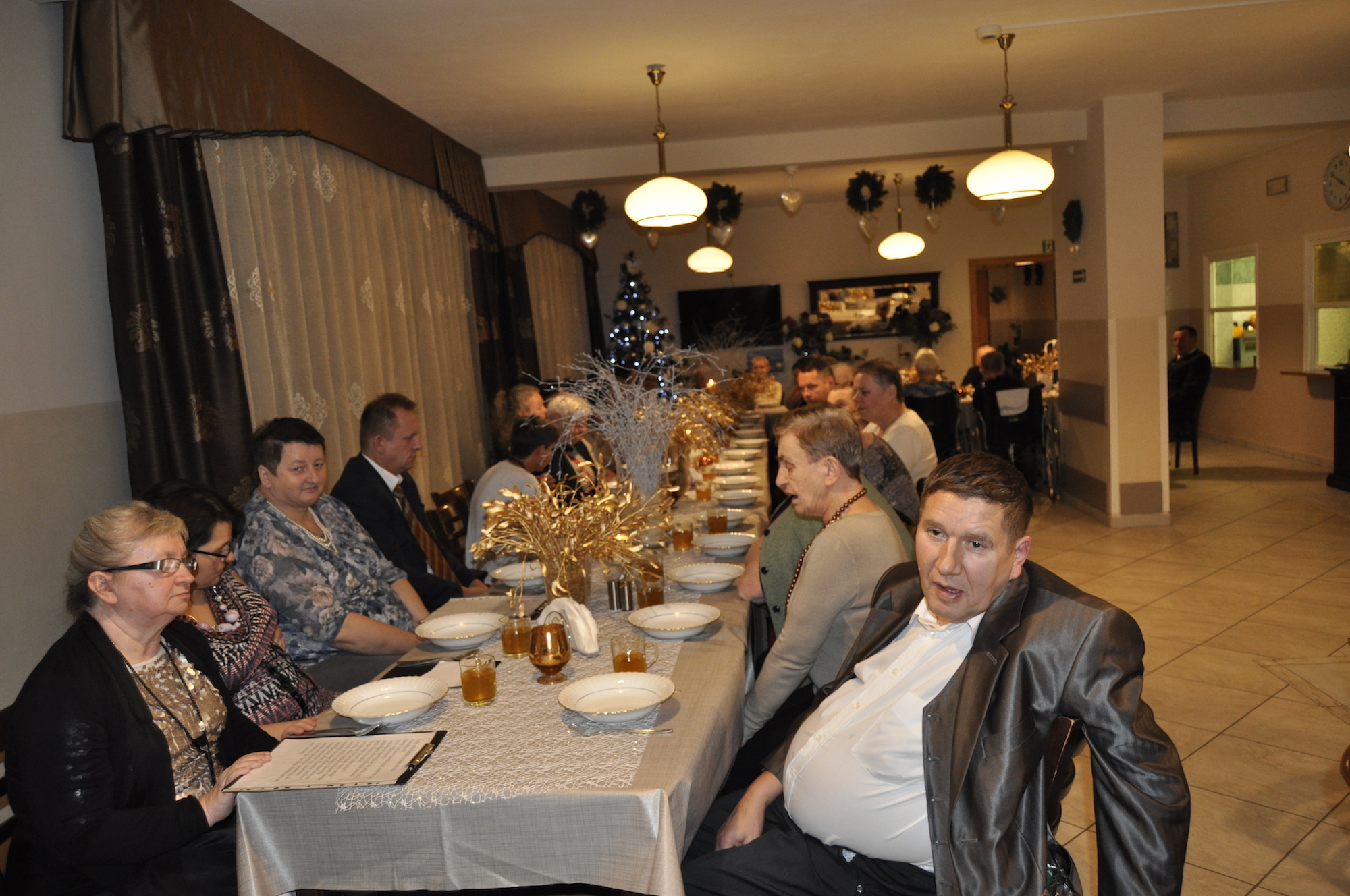Magia Świąt – Wieczór wigilijny, to wyjątkowy dzień, szczególnie dla chorych przebywających daleko od domu rodzinnego. Dzielenie się opłatkiem, potrawy wigilijne ,wspólne śpiewanie kolęd to tradycja naszego Domu. W ten wyjątkowy wieczór Pani Dyrektor Małgorzata Łukasik oraz dyżurujący personel starają się stworzyć naszym podopiecznym namiastkę rodzinnego domu, poprzez wspólne łamanie się opłatkiem i spożywanie przygotowanych potraw przy kolędach zagranych przez Pana Jana.